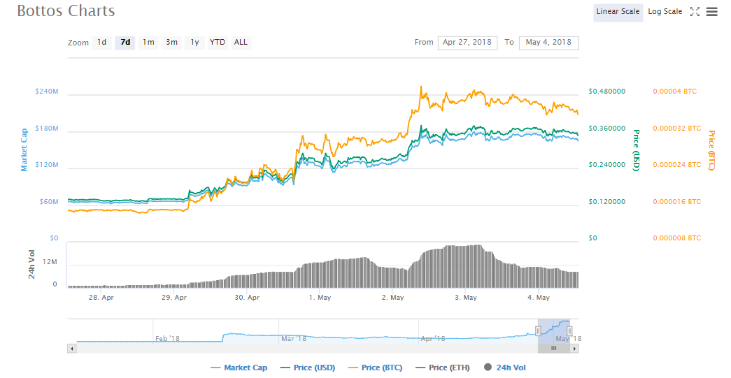 The crypto closed the previous week at $0.133 which was a good high when compared with the performance of the other cryptocurrencies over the past few weeks. Over the past few days, the crypto has grown to attract a price of $0.37 as of Thursday, May 3rd. In the morning hours of Friday, the price was $0.35 while the volumes were at $8.4 million up from $1.43 million on Friday the previous week. The market cap was at $166 million up from $65 million the previous week. The growth of the crypto was 163% during the week.