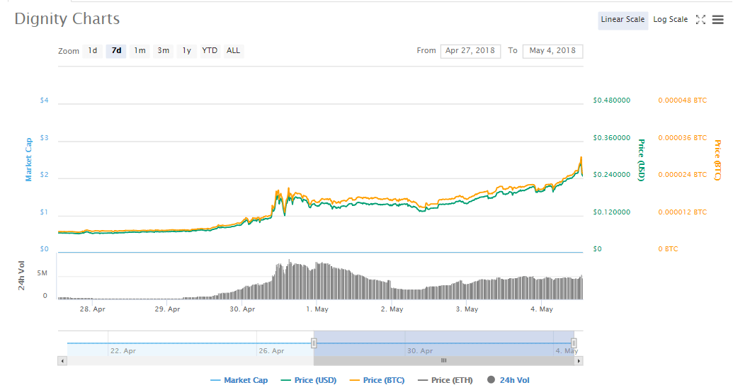 In mid-April, DNG token was attracting a price of $0.057 but at the end of the month the value had shot up to reach $0.18. The crypto has managed to stay above $0.1 since April 29th while the volumes have not gone below $2.2 million. On Thursday, May 3rd, the token touched a high of $0.21 and the volumes traded stood at $4.6 million. No market cap information is available. In the morning hours of Friday, the crypto’s price was $0.258 and the DNGs traded were worth $4.49 million. This represented a growth of more than 307%.