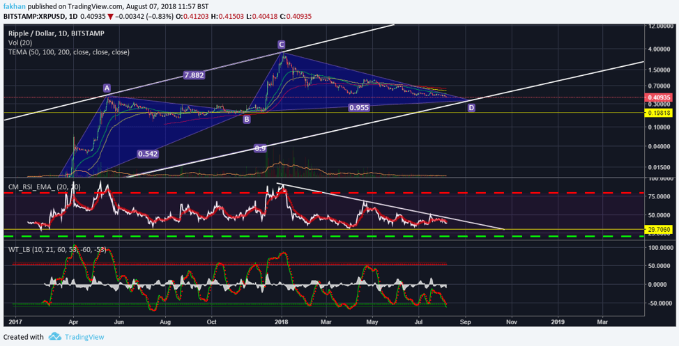 Ripple (XRP)’s fundamentals may appear uncertain but the technicals tell a whole different story. The weekly chart above for XRP/BTC shows that Ripple (XRP) has just completed its correction against Bitcoin (BTC) and is poised for a big run up in the weeks ahead. The wave trend analysis also looks very favorable for a big run up in the remaining half of the year. EMA alignment on the XRP/BTC chart still remains bullish and the price is currently resting at a historical trend line. Whether or not there will be enough catalysts to begin a new cycle with the same vigor remains to be seen, but if there are positive developments and the overall market turns bullish again, then it is very likely that Ripple (XRP) will see new highs in the remaining half of the year.