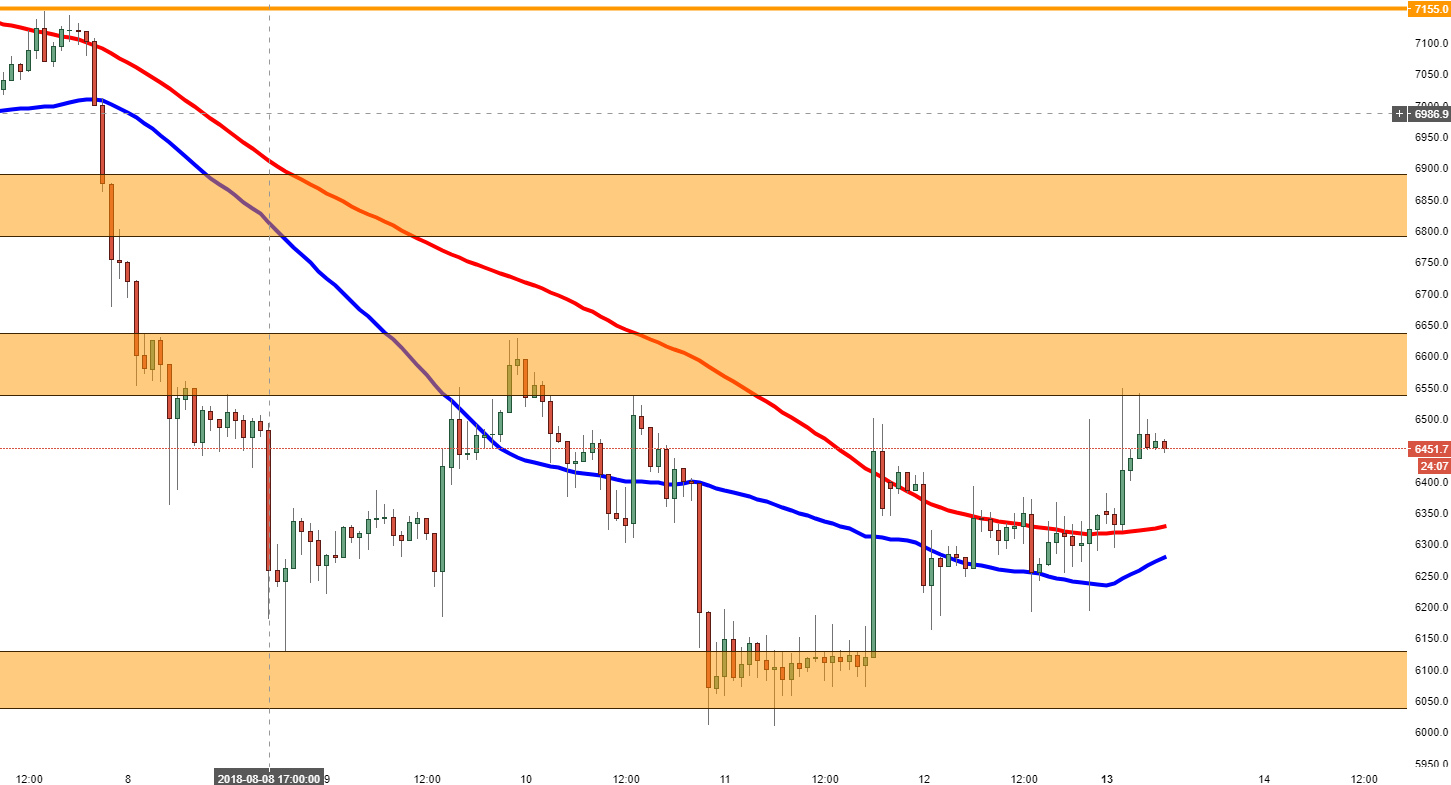 - BTC/USD is struggling to break down the $6500-600 area, where a supply zone is seen.