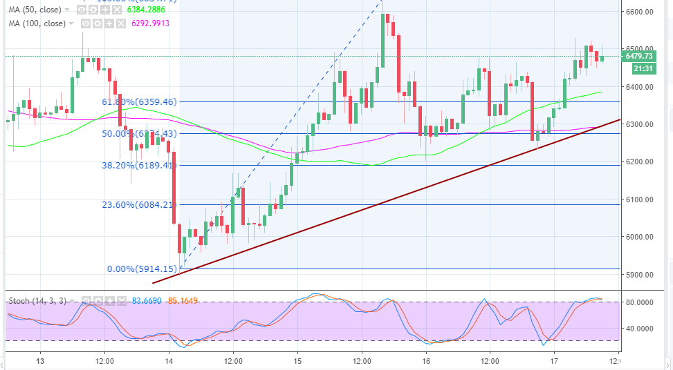 Bitcoin price continues to battle with the resistance at $6,500. It had a brief step over above this resistance level following the analysis we published earlier in the day, however, the price declined marginally and found a support at $6,450. Bitcoin buyers have strong buying power on Friday but the sellers are still limiting gains to the upside.