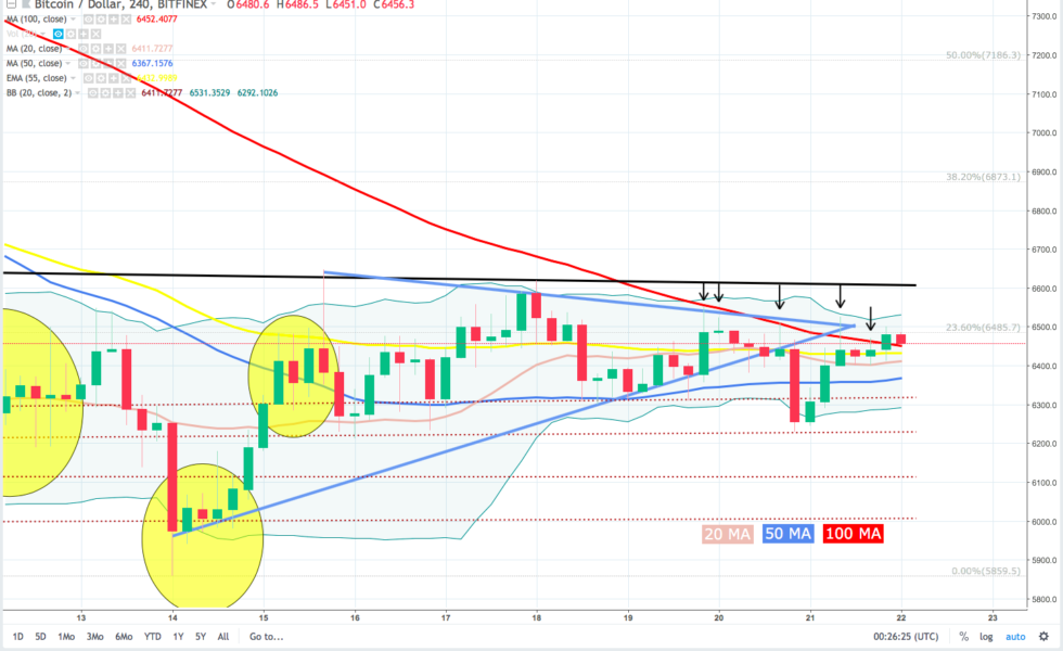 The current technical setup, along with upcoming current events, has the potential of pushing BTC prices above $6,600 and on towards $6,800 However, it’s possible that the prolonged sideways trading is a by-product of investors not taking up any high-risk positions as the general expectation is that the SEC will reject the ProShares BTC-ETF and bitcoin prices will plummet again — like they did after the SolidX-VanEck delay.