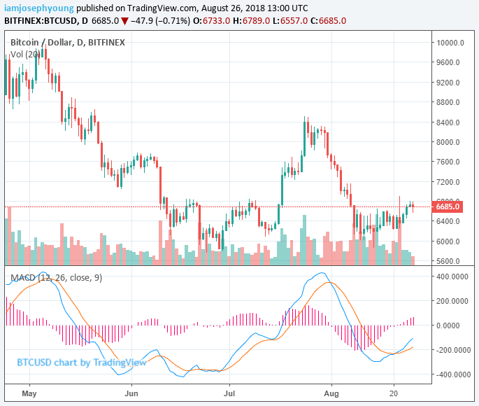 Bitcoin has remained relatively stable in the $6,700 region in the past 24 hours as Ethereum, Bitcoin Cash, Ripple, EOS, and Stellar all recorded slight losses in the range of 0.5 to 1.5 percent.