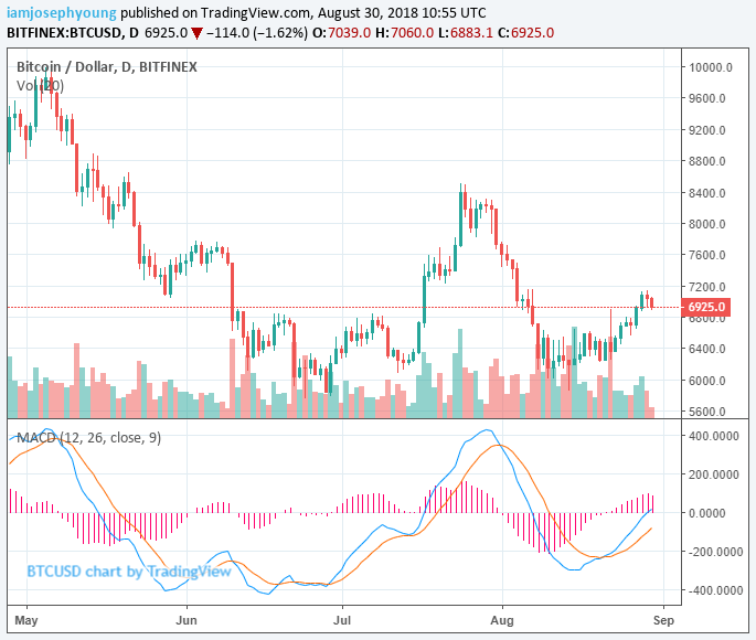 Since August 6, Bitcoin has remained in the mid-$6,000 region, struggling to break out of the $7,000 resistance level and demonstrate strong volume to signal proper mid-term recovery.