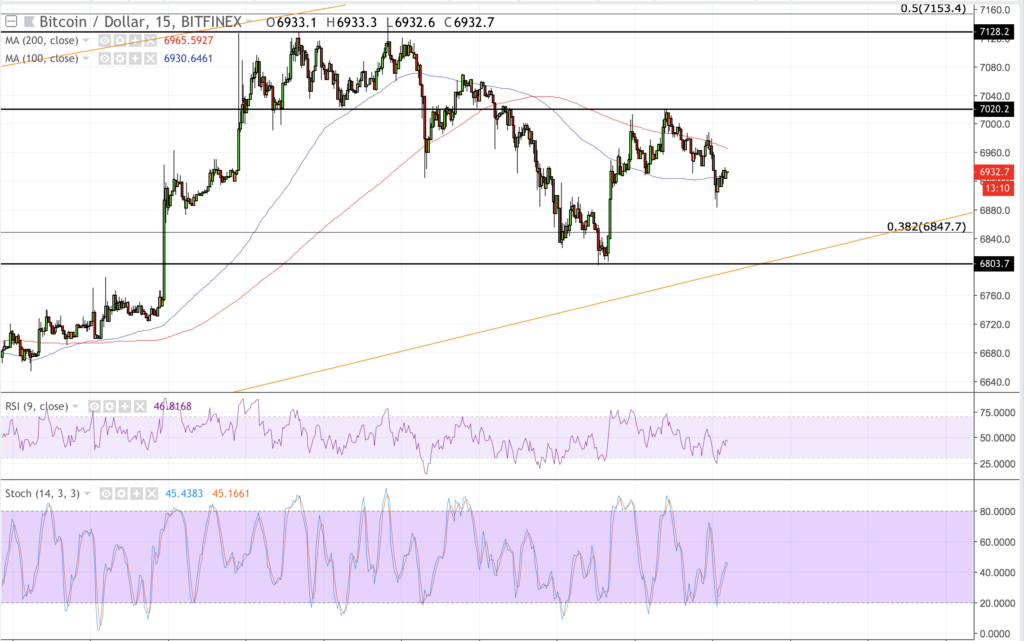 The BTC/USD began the day continuing to its steady upside recovery and reached as above as 7020-fiat during the early Asian trading session. The bounce back could have been more effective had it managed to break above 7000-fiat for a more extended period. But as the European session came into play, traders visibly started exiting their positions around 7000-fiat – verifying it as a strong selling area. As a result, the pair dropped and formed lower lows towards 6883-fiat, on which it is now attempting a bounce back towards the intraday high.