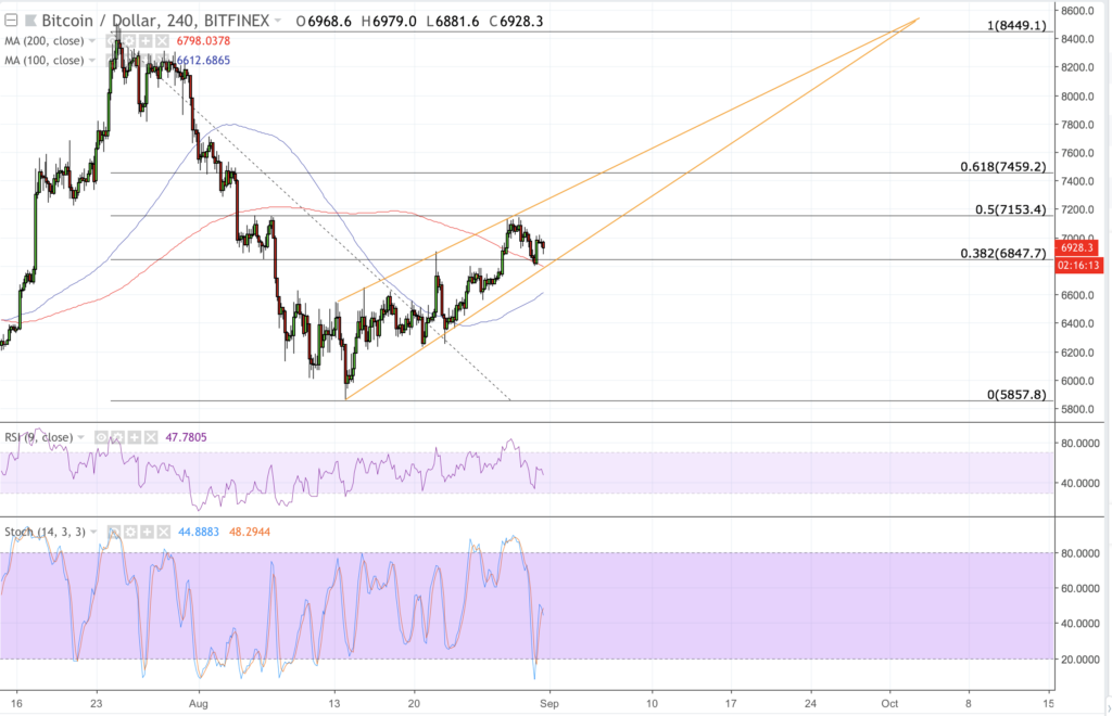 Bitcoin on Friday recovered more than 3 percent from its intraday low near $6,800.