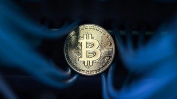 © Bloomberg. A bitcoin sits among an Ethernet cables inside a communications room at an…More