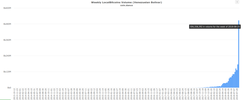 Data from Coin Dance, which tracks volumes on P2P platform Localbitcoins, confirms that the seven days ending August 25 saw BTC/VES achieve volumes never seen before.
