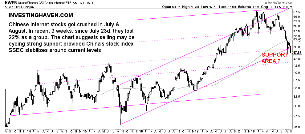 Overall, though, much will depend on what happens with the Chinese market in general. As said before the Shanghai Exchange trades near secular support, see 3 Must See Charts On China’s Stock Market Selloff in 2018.
