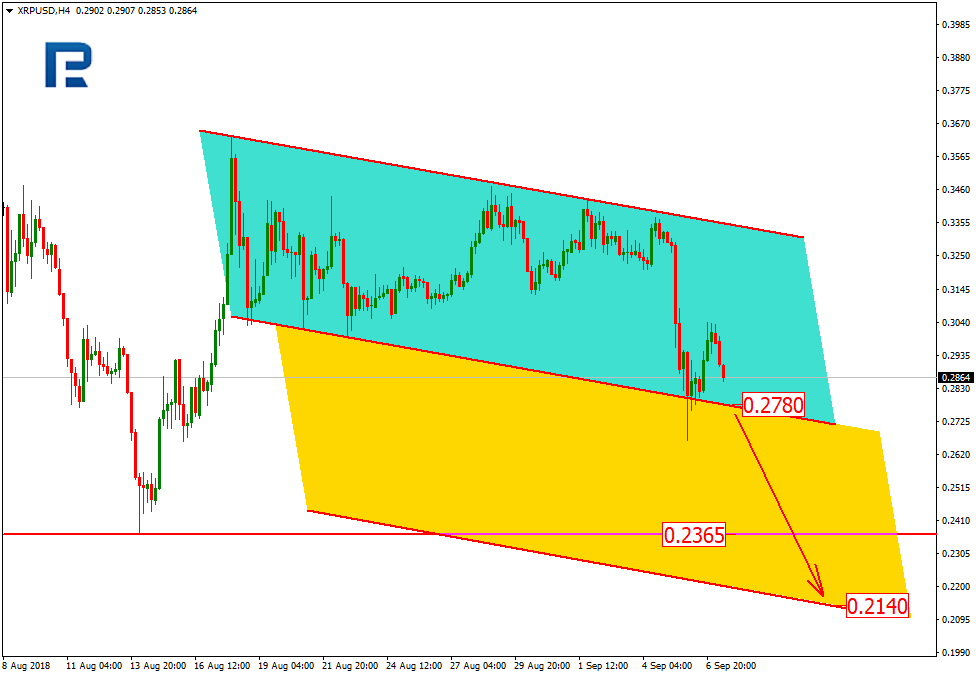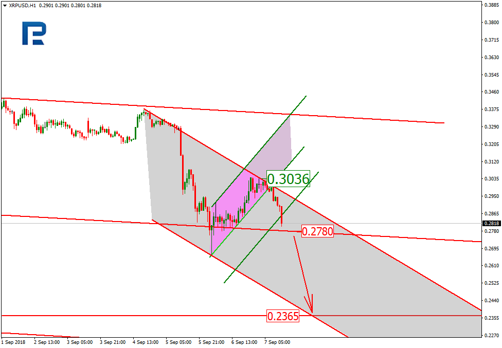 On H1, XRP is finishing its local correction uptrend and forming an inside downtrend channel. Once the support at 0.2780 gets broken out, the new channel support and the key low at 0.2365 is going to be the next target. Meanwhile, the local resistance is at 0.3036.