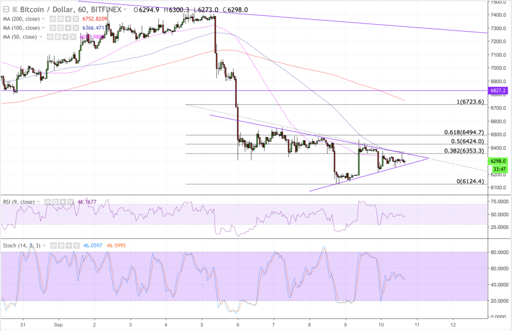 The BTC/USD today rose as much as 3.67 percent since establishing its intraday low at 6149-fiat. The pair started the trading session attempting a weak rebound from yesterday’s 100-dollar fall. The Asian morning saw BTC/USD forming higher highs towards 6372-fiat. However, the pair recorded a downside correction as the Europe session picked momentum, dropping towards 6255-fiat. And now, at the beginning of US trading hours, BTC/USD looks to be in a bias conflict.