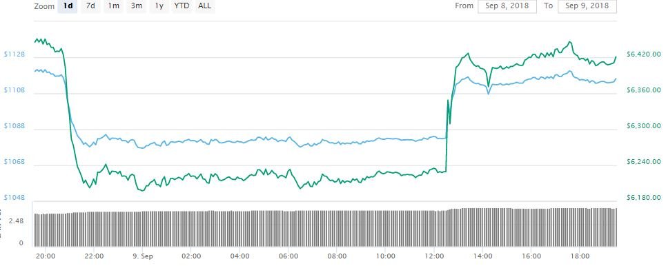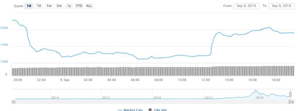 The chart of the entire cryptocurrency market reveals almost the same performance pattern for the last 24 hours.