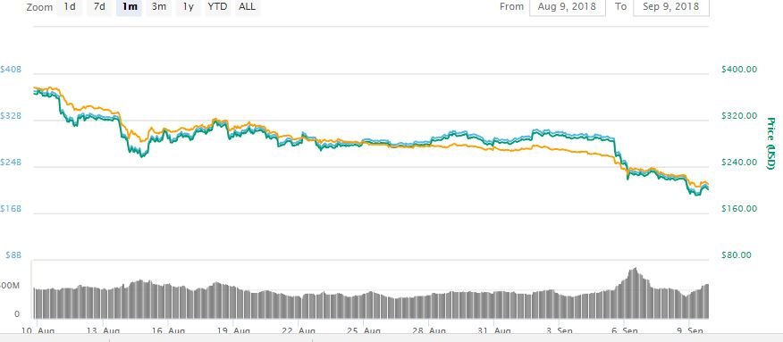 At the same time, Ethereum has had a rough month, having lost around 40 percent of its value in the last thirty days.