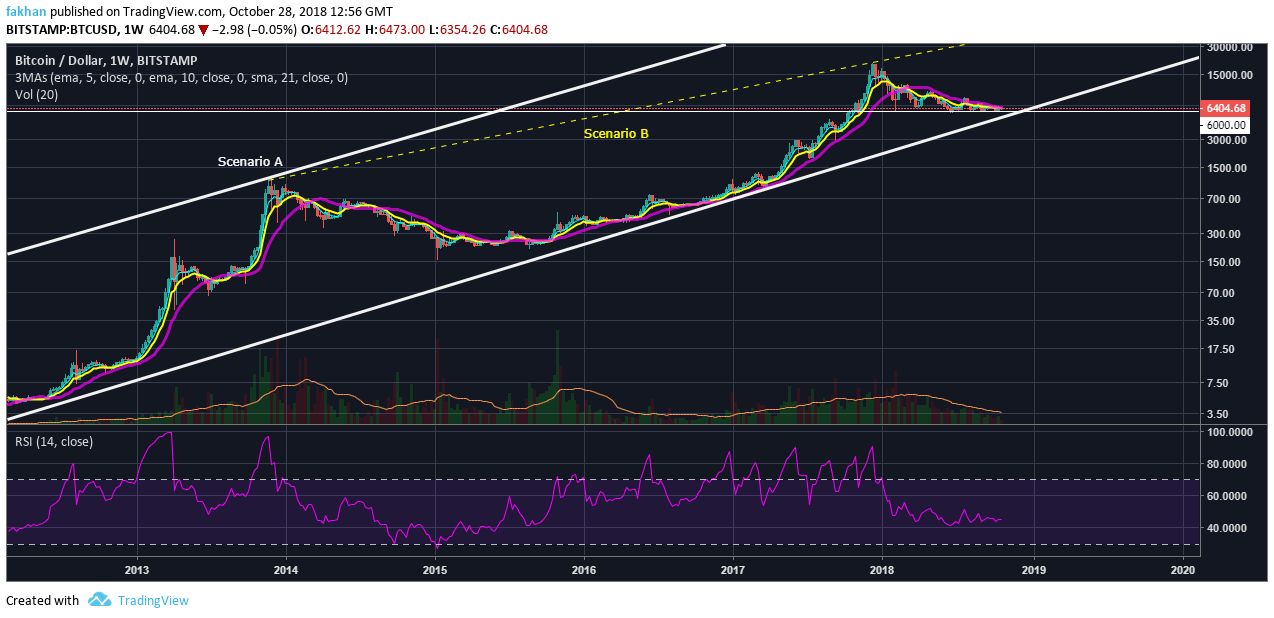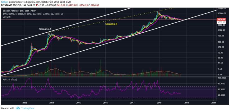 For the past eight years we have seen Bitcoin (BTC) die more than a hundred times! People have called it a scam, a pyramid scheme, and a bubble but it has survived. There is no reason to believe that it is going to change. Sure, the price may not rise as aggressively as before. As the supply of Bitcoin (BTC) decreases, Bitcoin (BTC) will appreciate in value. However, it may not do so with the same pace. This is why Bitcoin (BTC) will follow either of two scenarios in the years to come. If it follows Scenario A, it will rise back to the top of the ascending channel and we will see a price of $300,000 in 2019. However, if it follows scenario B, we will see its price rise to $60,000 in 2019. In any case, the bottom is in and after 2018 we may never see the price of Bitcoin (BTC) in four digits ever again.