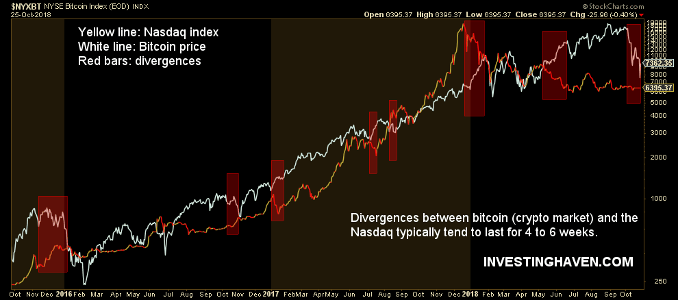 Both assets have been rising and falling in tandem in recent years. Only a minority of cases have shown a divergence, and they tended to last between 4 and 6 weeks.