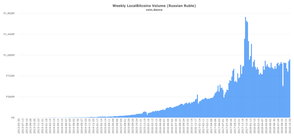 This is fairly understandable. Russia currently has no official cryptocurrency on-ramps, although new legislation is apparently imminent. Therefore, far more of the country’s bitcoin trade occurs through LocalBitcoins. And Venezuela’s current issues with hyperinflation and currency instability need no recap here.