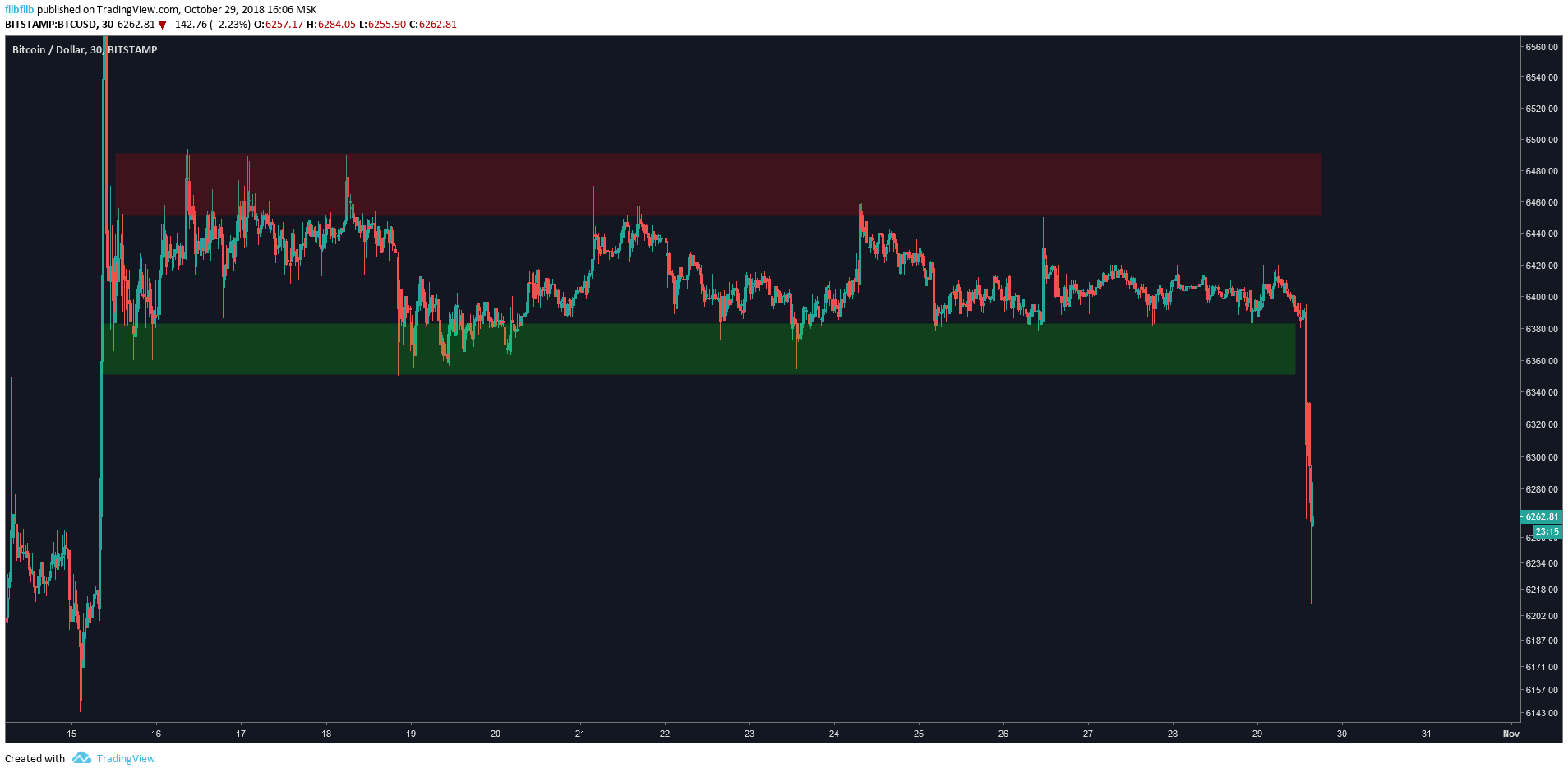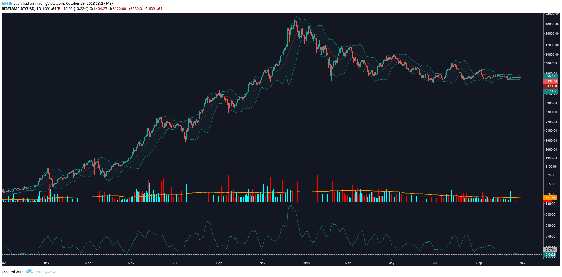 Bitcoin had been firmly locked in a single trading range for over two weeks, with lows of $6450 and highs of $6490.