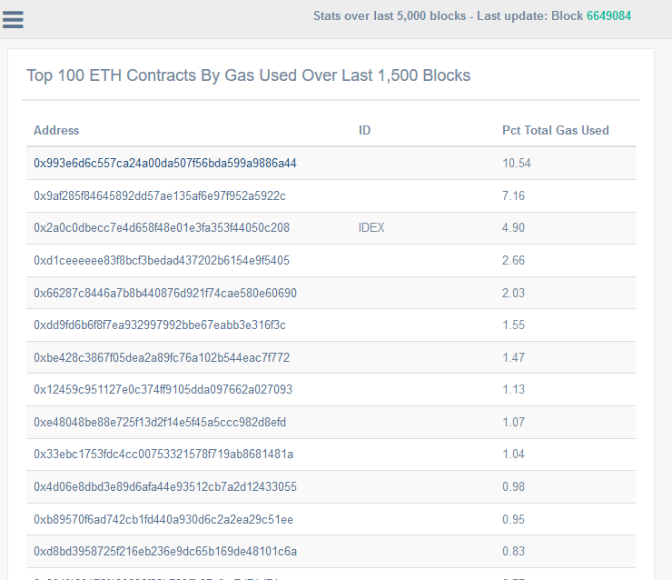 A website dedicated to tracking the biggest gas hogs in Ethereum confirms that this contract is using the most gas on the network at present time.
