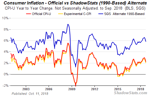 As an additional check we look at the alternative inflation indicator which is compiled by Shadowstats. It challenges the official government data.