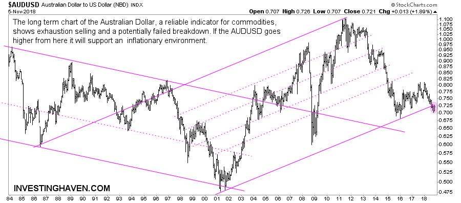 It is easy to identify the pattern(s) on this long term AUDUSD chart. What is important to monitor is if the AUDUSD started a failed breakdown recently. If the AUDUSD gets back in its rising channel it will be inflation friendly, while if it sets a higher high against the readings early this year it will suggest rising inflation. It really is that easy.