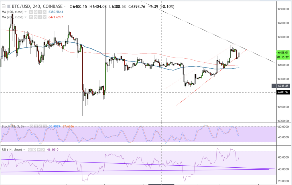 The bitcoin-to-dollar exchange rate has dipped close to 1 percent on Thursday, now trading at 6470-fiat.