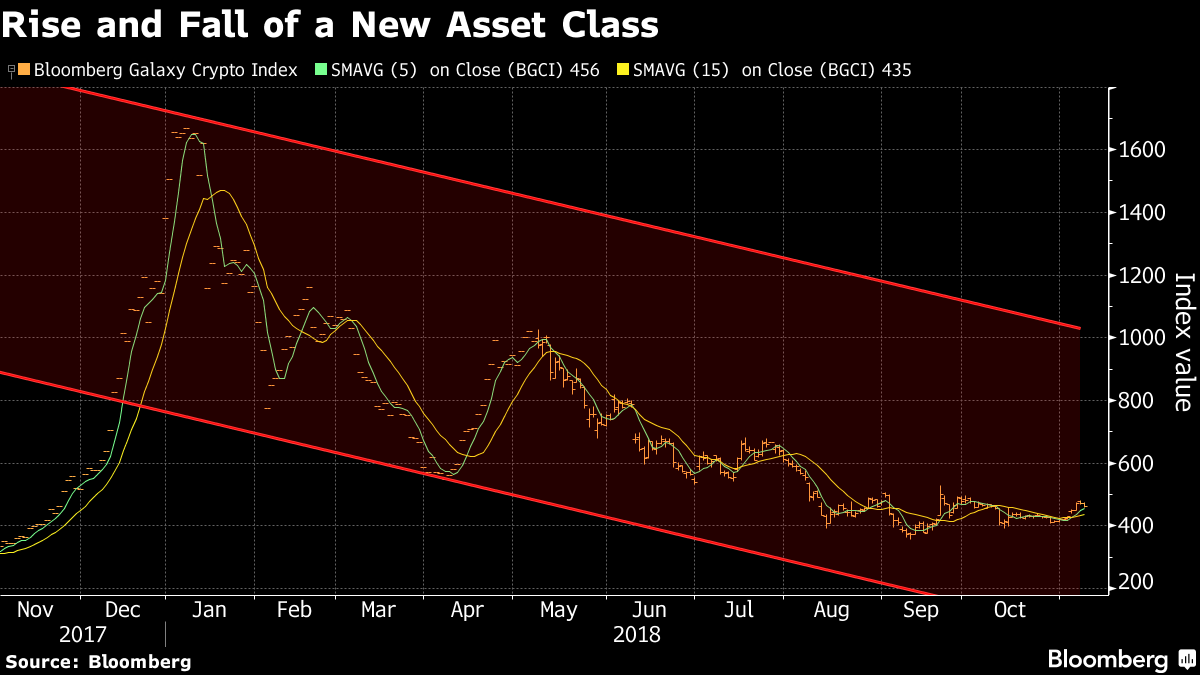 Bloomberg‘s report on Storonsky’s bearish statement also includes a graph which can best be described as ‘classic Bloomberg.’ The majestic work of art appears to be the product of someone’s boss demanding that the artist just ‘put make one giant downward channel’ — as if that is the best way to convince readers that cryptocurrencies are falling.