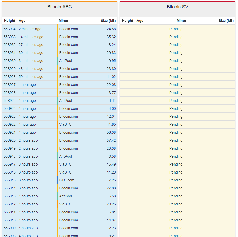 However, on Thursday, as the hash rate conflict between ABC and SV kicked off, it was evident within less than 30 minutes that the majority of hash power was on the side of ABC.