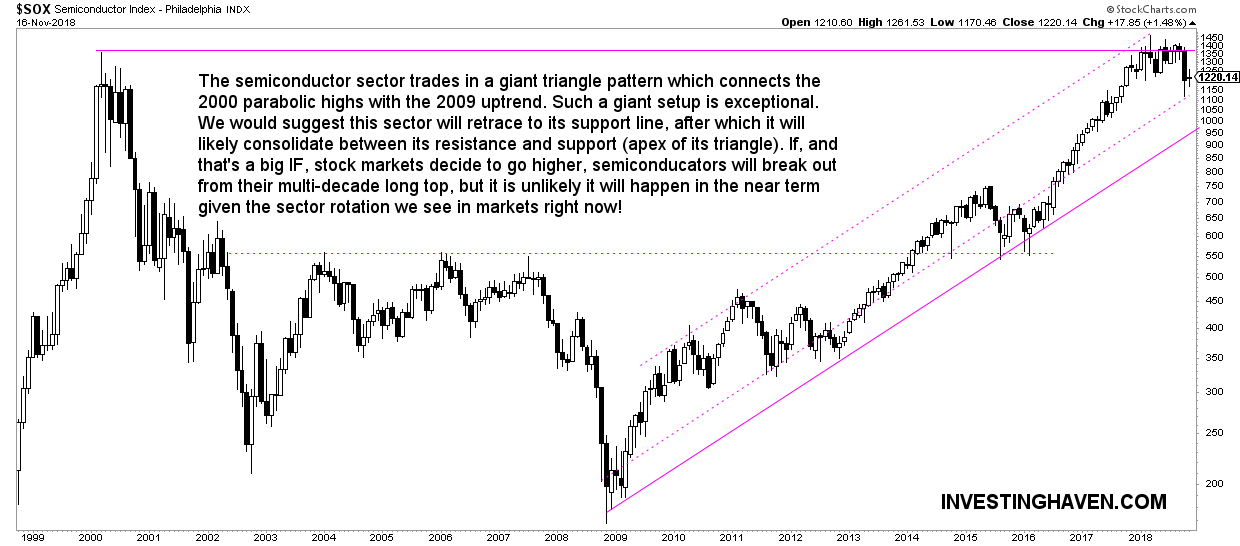 Bellwether semiconductor stock Nvidia crashed this week after their earnings call. What does this mean for the semiconductors sector in the short and longer term? Our stance is simple: the semiconductors sector rose too fast, and needs a breather now. However, we see a breath-taking semiconductors sector chart which is likely about to prepare a multi-decade breakout in 2019. This, of course, suggests there will be no stock market crash, but rather a stock market recovery in the months.