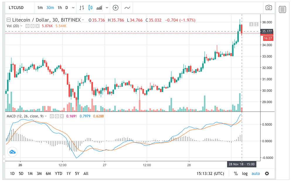 Litecoin price seems to have begun to pick up around 22:00 CST last night, with an initial sell-off worth about 20,000 Satoshis per token happening for the next couple of hours. A simultaneous price-rise in Bitcoin actually meant the market capitalization of the cryptocurrency rose during this same period. Then, around 1:45 AM CST, demand seems to have to picked up and the price was on the rise yet again with 13% increase on the LTC/USD pair.