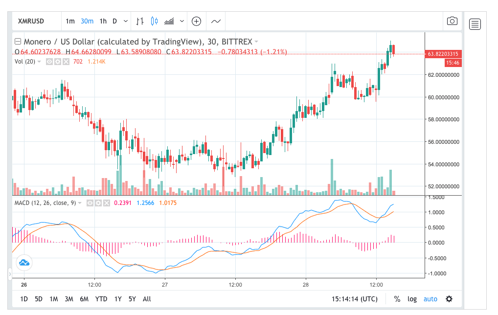 Privacy coin Monero, which has a small infinite inflation and a current supply of about 16.6 million, gained roughly $8 in US dollars over the 24-hour period, with $20 million traded across all exchanges and pairs.