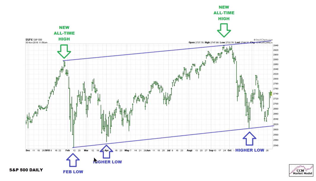 Courtesy of market analyst Chris Ciovacco who has a weekly S&P 500 market video which we can really recommend we see an interesting pattern shaping up. Below is the S&P 500 pattern for 2018 with, interestingly, a series of higher highs as well as higher lows.