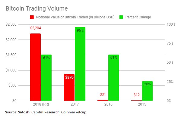This volume of trade is especially profound given the tirade of criticism from vocal naysayers who continue to engage in Bitcoin bashing. According to Satoshi Capital Research, the notional value of BTC traded so far in 2018 stands at $2.2 trillion.