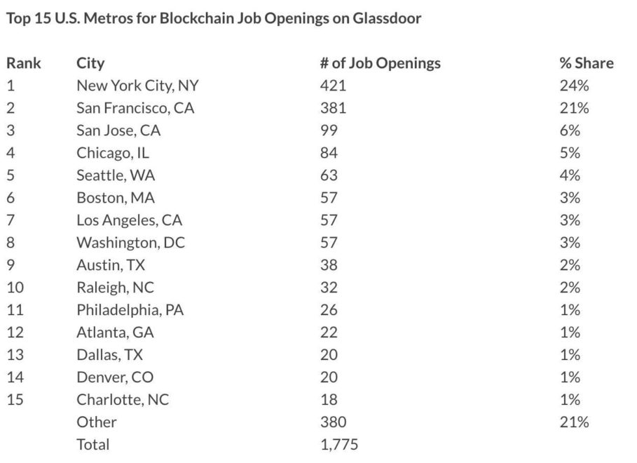 Going forward, despite the blockchain industry, in particular, attracting mixed publicity recently, its longer-term growth seems somewhat more assured, says Glassdoor, adding: