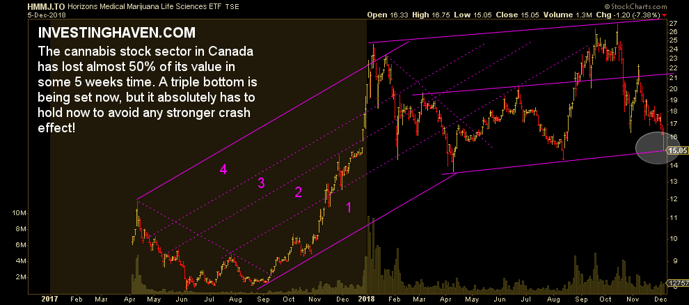 It is getting tight in the cannabis sector. Our Cannabis Stocks in Canada forecast for 2019 was very bullish but in recent weeks the market went against our forecast. No harm done yet, but this sector has to recover otherwise it might invalidate our forecast. The cannabis sector is now trading at a major point of support.