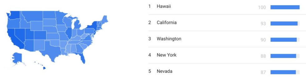In the US, the island of Hawaii tops the charts, followed by California, Washington state, and New York – all known to be hotspots for cryptocurrency-related activity.