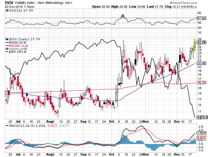 The CBOE Volatility Index, also known as the VIX, approached 29.00 on the scale of 1-100 where 20.00 represents the historic mean. The so-called “fear index” is up nearly 10% at the time of publication and has gained a whopping 131% this year. VIX usually trades inversely with the S&P 500 and sharp moves above the historic mean signal bearish conditions for stocks.