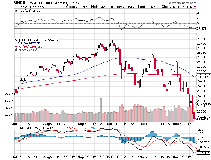 All of Wall Street’s major indexes headed for deep losses, extending a week-long losing streak that threatens to unravel a decade-long bull market. The Dow Jones Industrial Average fell more than 400 points toward new yearly lows. At the time of writing, 27 of 30 index members had reported losses.