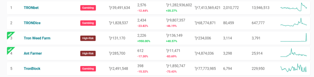 According to DappRadar, a platform that provides data on the dApp usage of major smart contract protocols, the top three dApps on TRON have 2,300 users on average, with TRONbet recording 2,500 active users and 2 million transactions per day.