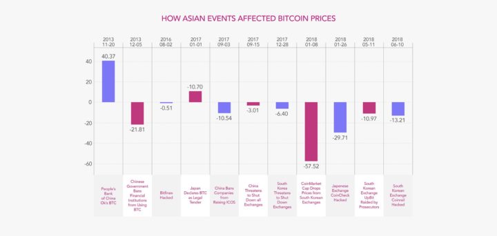 The research firm says there have been 11 major news developments from Asia concerning cryptocurrencies. These headlines impacted the market by an average of 18.61 percent.
