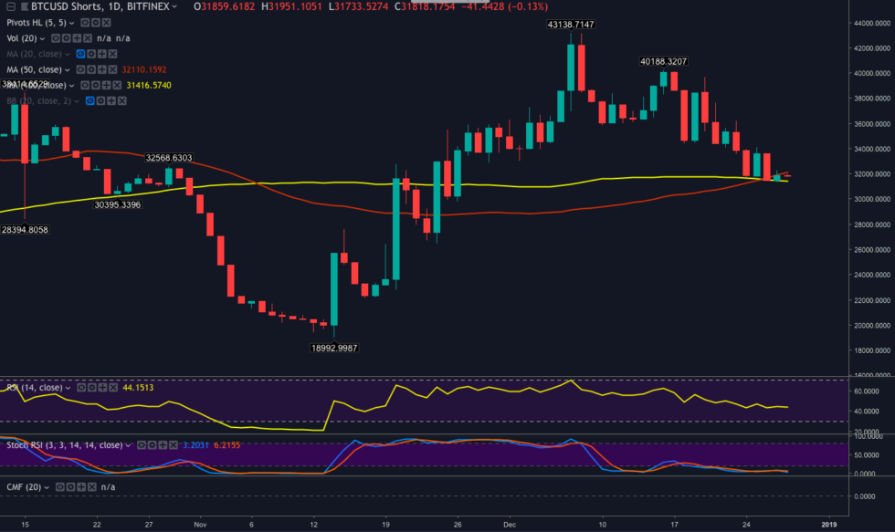 A quick glance at the Bitcoin shorts chart shows bears haven’t entirely made up their minds either. Perhaps everyone is waiting for the CME futures to close this Friday while also stocking their liquor cabinets for the upcoming New Year’s celebrations.