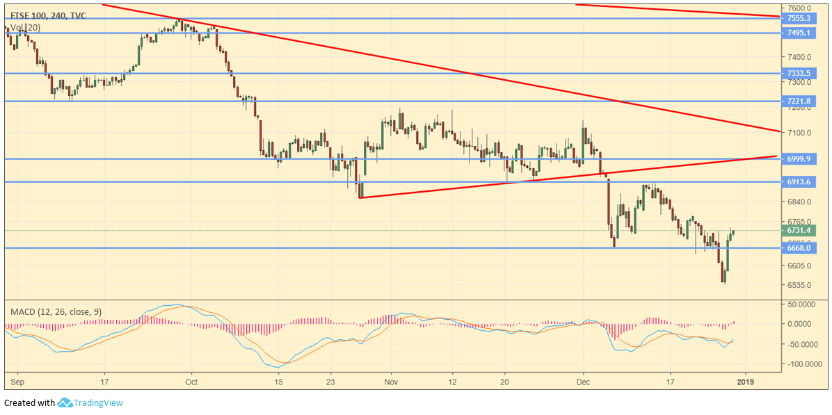 FTSE 100 Index CFD, 4-Hour Chart Analysis