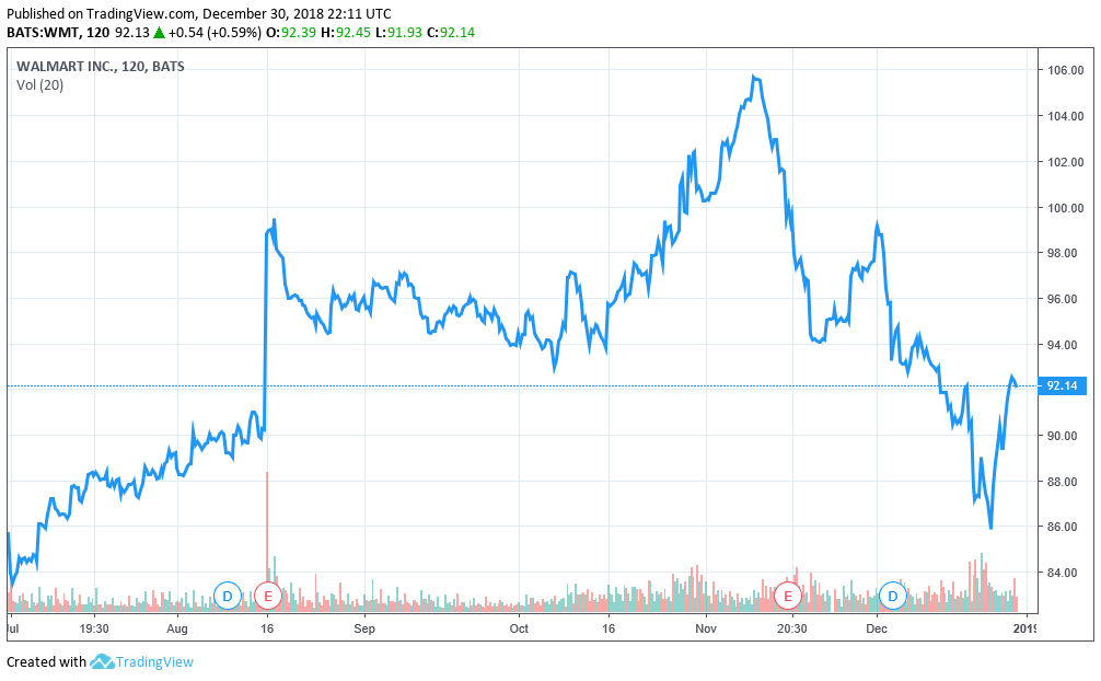 Walmart, Tiffany & Co., Target, and other major retailers in the U.S. fell by over 20 percent on average in the last quarter of this year. From its highest point on November 9, the stock price of Walmart, which has been the best performing retailer in the U.S., plunged from $105.5 to $85, by just under 20 percent.
