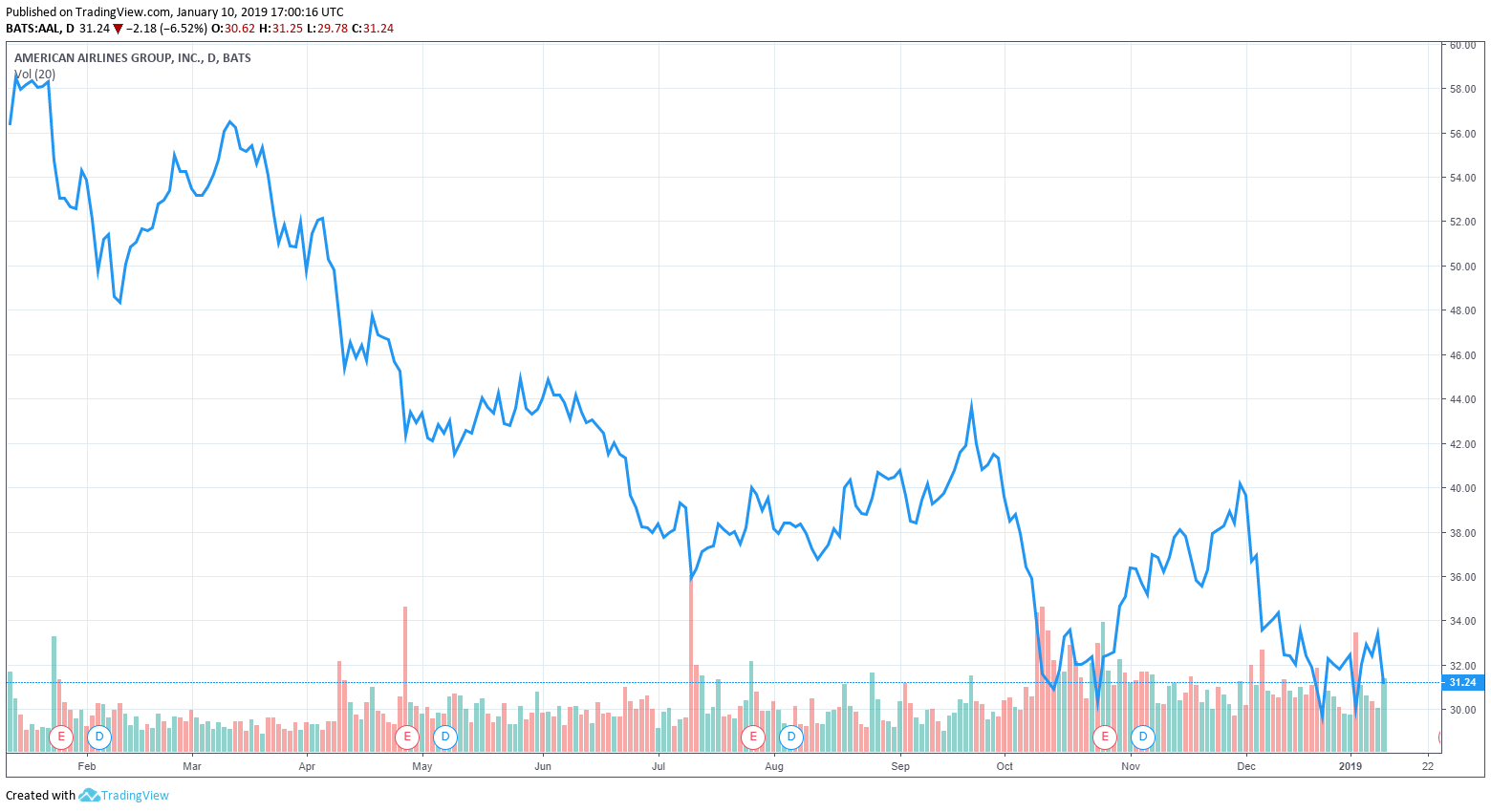 American Airlines had predicted its key “revenue per available seat mile” metric would grow year on year up to 3.5%. Actual growth was 1.5% in the last quarter of 2018.