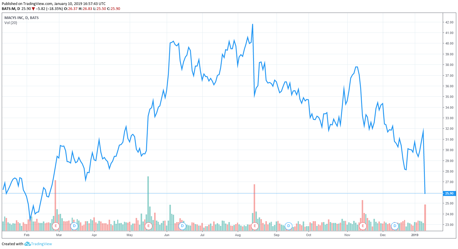 Iconic department store chain Macy’s has reported weak 2018 holiday sales and revised its earnings forecast downward. The news sent the company’s share price plummeting over 18% already today.