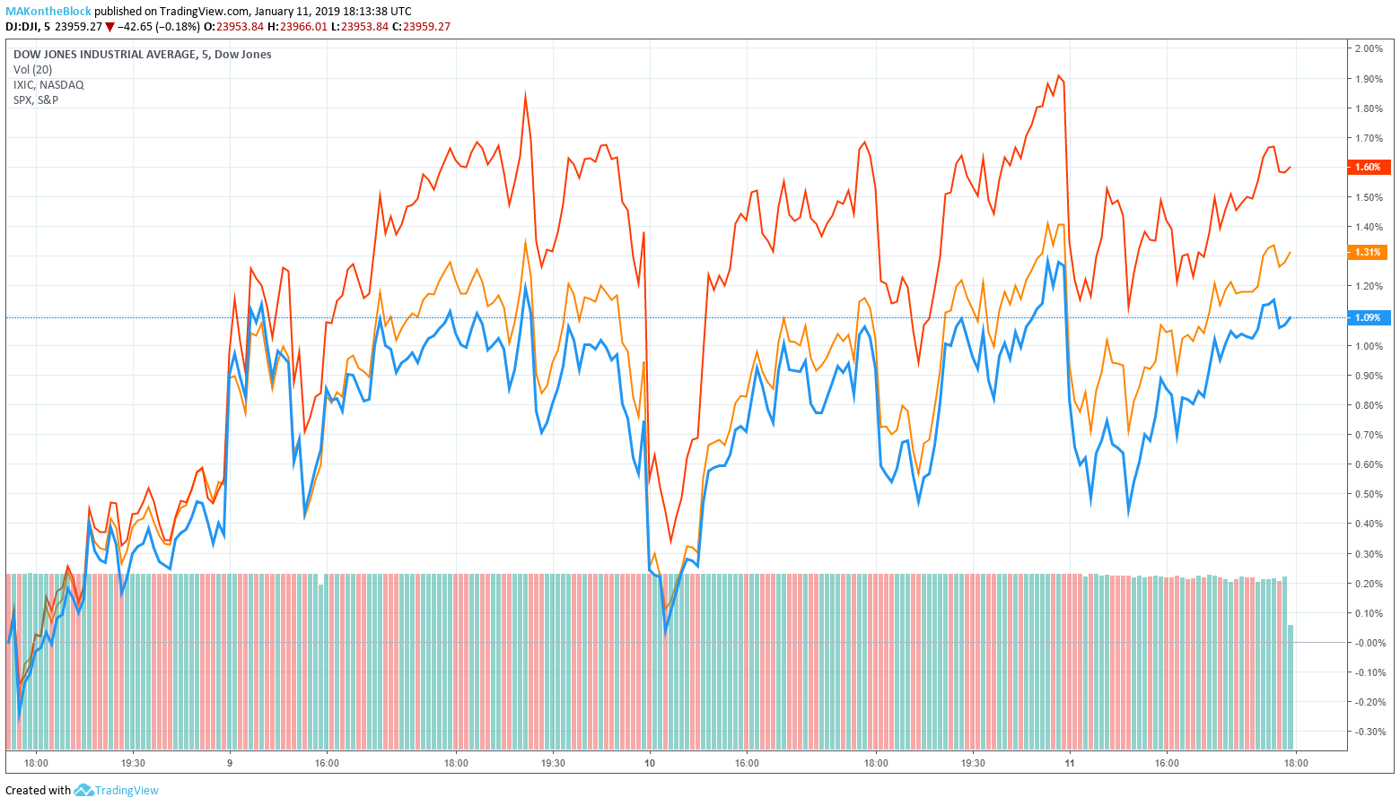 If Waters manages to roil the markets, the news of an ally in Ocasio-Cortez may also be doing so. Since the news broke trading has shivered somewhat, and the Dow Jones Industrial Average, the Nasdaq, and the S&P 500 are all down for the day, albeit less than 1%. The markets have a bit of Friday trading left to recover, but can they take a five-day upturn into a sixth?