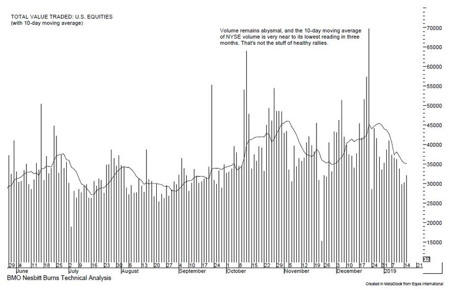 Despite being regarded as one of the best indices with which to measure American economic performance, the S&P 500’s rise is not enough to convince Visch that the bearish fundamentals from December have actually gone away. He warns that “things are not that great,” especially since analysis of the New York Stock Exchange over the past week shows that it has a practically flat breadth, which means that there is no distinctly visible uptrend. In addition, he also points out abnormally low stock market volume as a cause for concern.