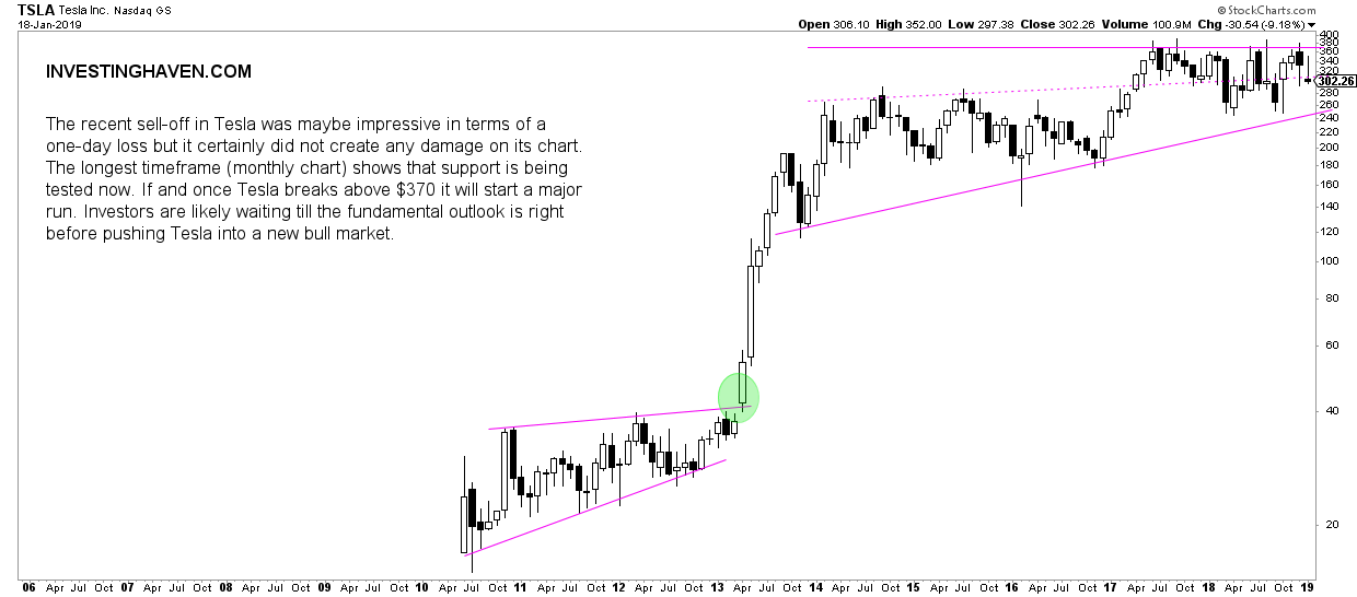 However, it might also fire a buy signal for Tesla’s stock in 2019, as it might be near a major bottom.