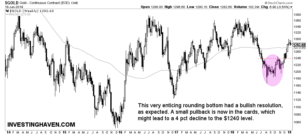 It should not come as a surprise that both gold and silver started their pullback this week once gold touched $1300. It was the first resistance point, and, as always, key resistance is not broken with a first attempt. As per our 100 investing tips