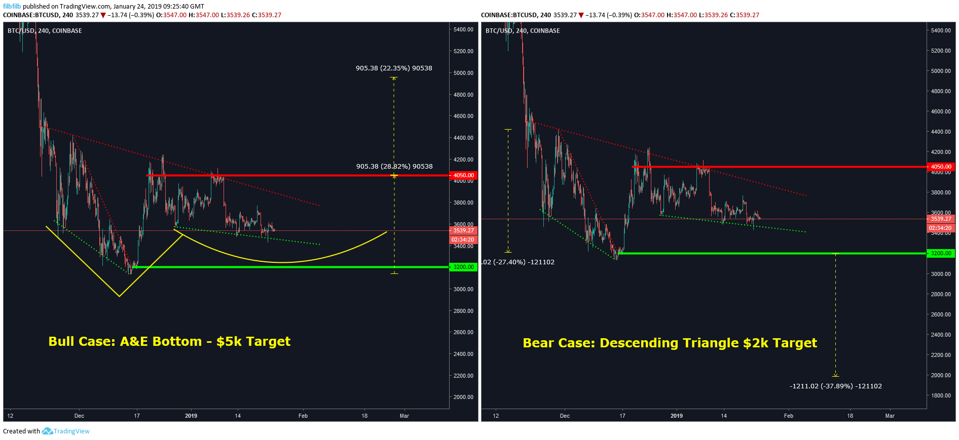 Some of the more bullish commentators are pointing out that a strong reversal at these levels would push the market back up towards $4k and show evidence of bottom pattern which, if it broke above key resistance at $4050 and maintained support, would ultimately open the door to prices as high as $5k.
