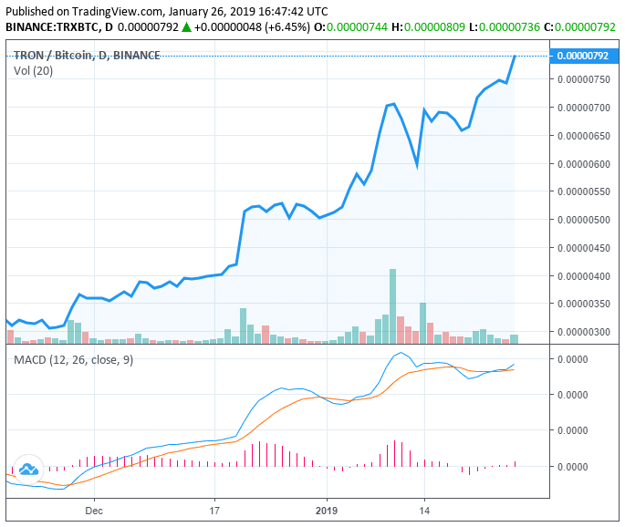 So far, TRON’s approach has paid off. In the past three months, TRON has outperformed both the U.S. dollar and Bitcoin. However, it remains to be seen whether the momentum of TRON is sustainable, especially pertaining to its price given that analysts generally expect the bear market of cryptocurrencies to extend throughout 2019.